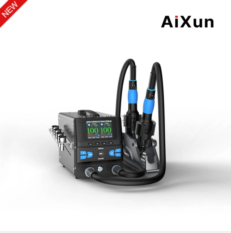 Двухканальная термовоздушная станция AiXun H414D — это инновационное решение с двумя независимыми каналами и двумя металлическими держателями, что удваивает производительность, экономит рабочее пространство, повышает управляемость и снижает издержки.